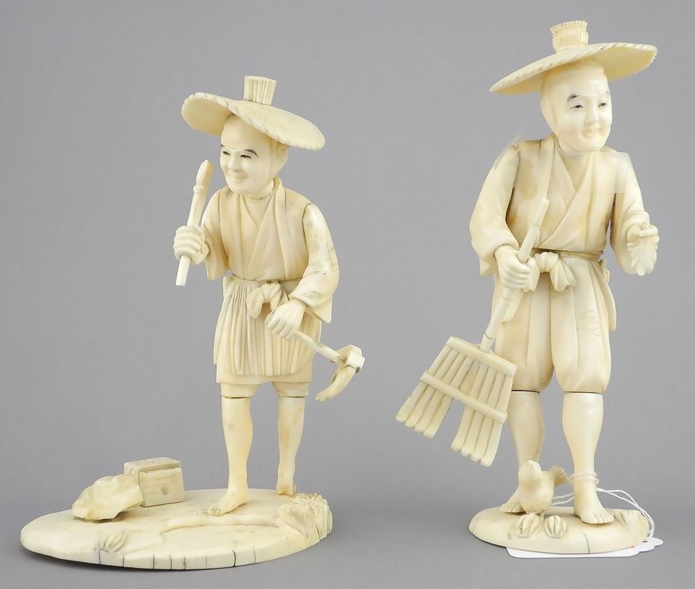Two Meiji Okimono, 6 1/8" & 5 1/2"h, NO EXPORT (losses noted).