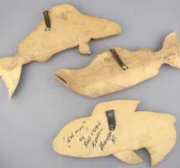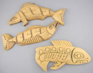 LOT 252 3 Ahousaht Fish Carvings signed Benson & Dan Bill, 11 1/4" - 13 1/2" L. Estimate: $60 - $100 Sold For: $100 Auction Date: Tuesday, November 26 2024 at 4:00 PM