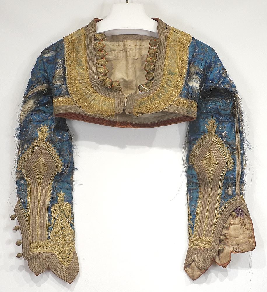 18th C. Gold Embroidered Children's Jacket with Coral Beads, 57"W (as found).