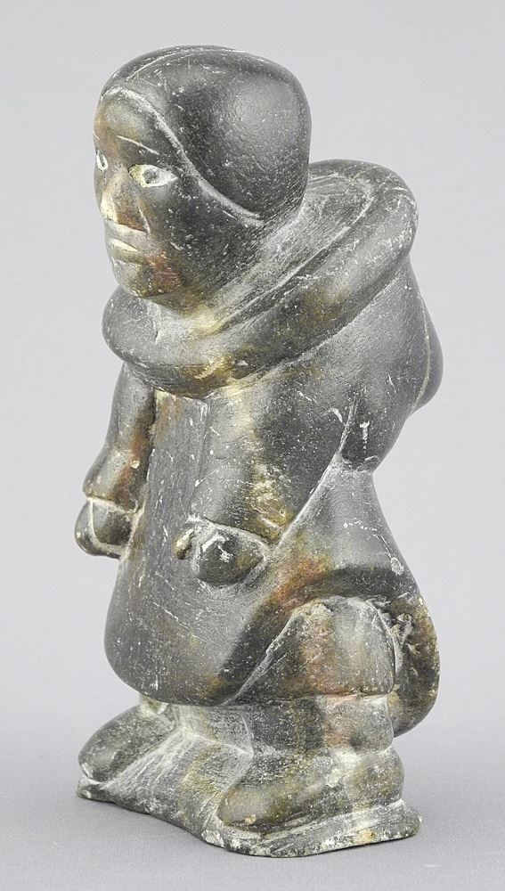 LOT 40 Old Inuit Stone Figure of a Woman, Base signed with Syllabics, 5"h (as found). Estimate: $50 - $60 Sold For: $80 Auction Date: Tuesday, November 26 2024 at 4:00 PM
