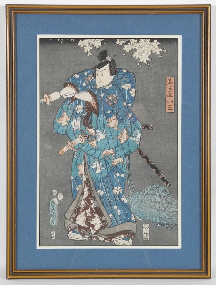 Colour Woodblock Print by Kunisada (Toyokuni III), 13 1/2" x 9", "Nagoya Sanza".