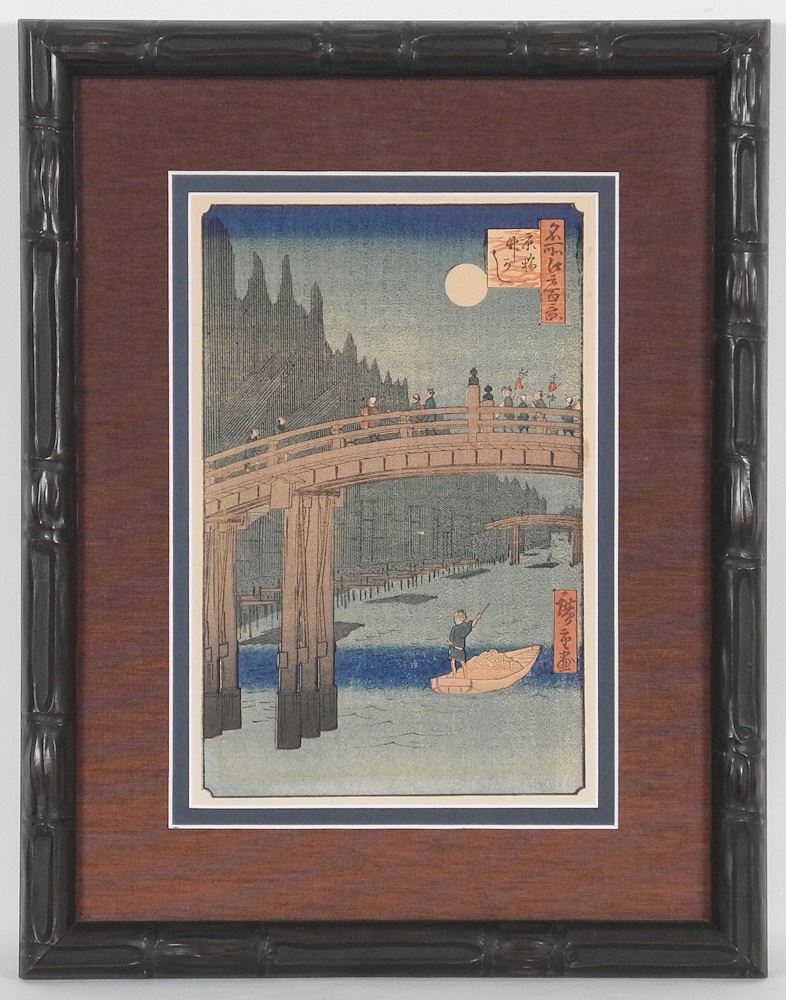 LOT 132 Colour Woodblock Print by Hiroshige, 11 1/2" x 7 1/2", "Kyobashi Bridge". Estimate: $100 - $200 Sold For: $180 Auction Date: Tuesday, November 26 2024 at 4:00 PM