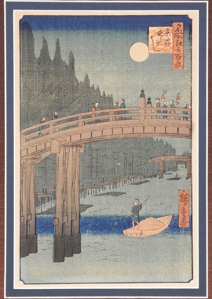 Colour Woodblock Print by Hiroshige, 11 1/2" x 7 1/2", "Kyobashi Bridge".