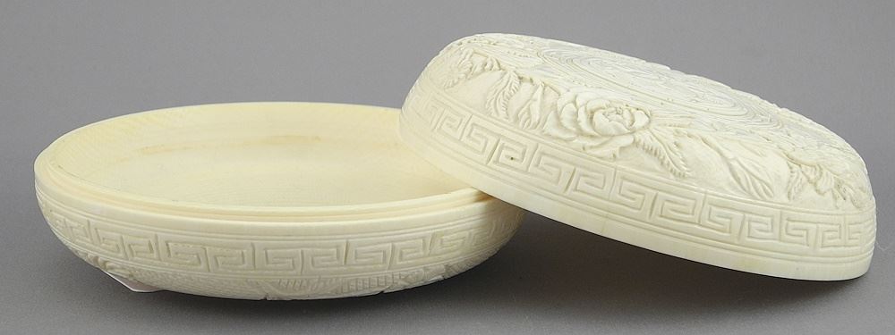 LOT 319 Chinese Carved Box, 4 1/2" Diameter, 229g, NO EXPORT. Estimate: $100 - $200 Sold For: $70 Auction Date: Tuesday, November 26 2024 at 4:00 PM