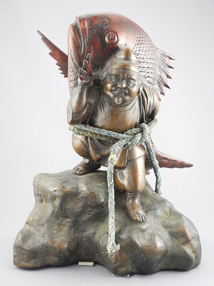 LOT 46 Japanese Bronze Sculpture, 15"h, "Ebisu & Giant Fish". Estimate: $100 - $200 Sold For: $85 Auction Date: Tuesday, November 26 2024 at 4:00 PM