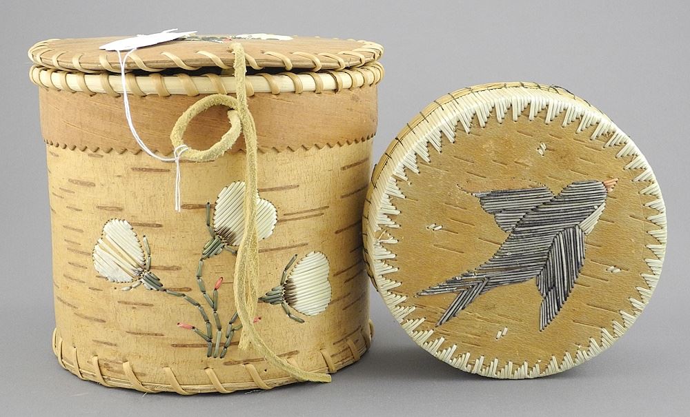 Two Cree Birch Bark Porcupine Quill Baskets Attributed to Ben Campbell.