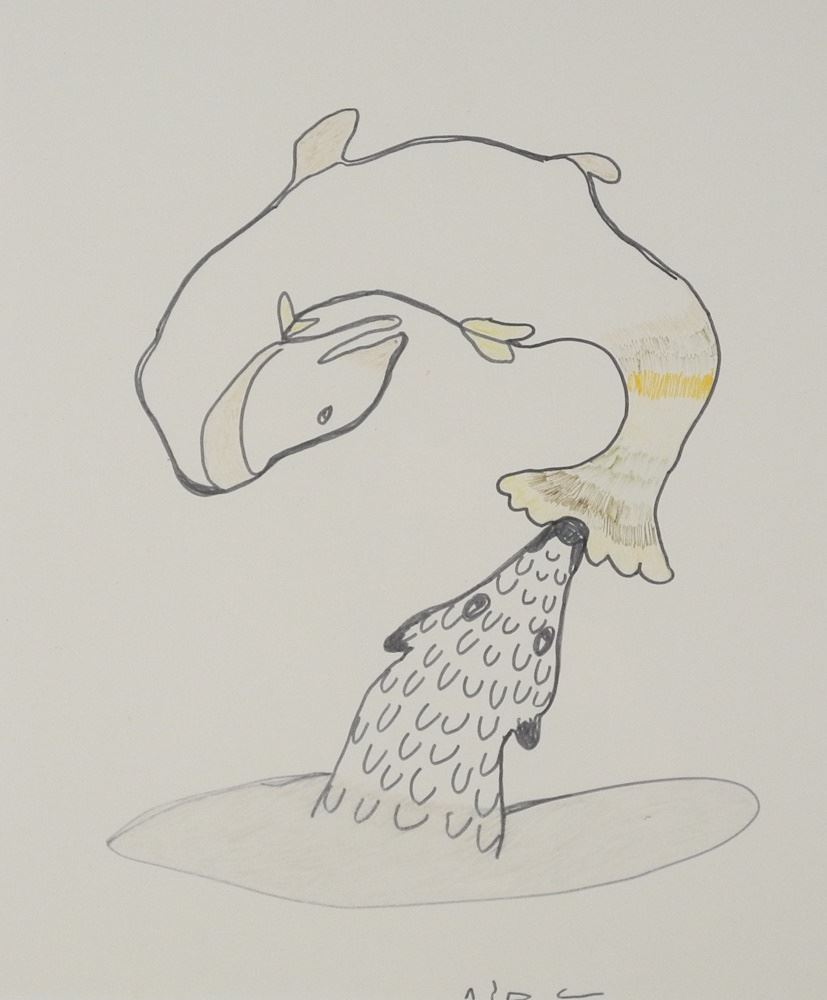 LOT 276 Felt Tip Drawing signed with Syllabics Pitseolak Ashoon, 16" x 13 3/4", "Serious Game". Estimate: $250 - $350 Sold For: $190 Auction Date: Tuesday, November 26 2024 at 4:00 PM