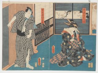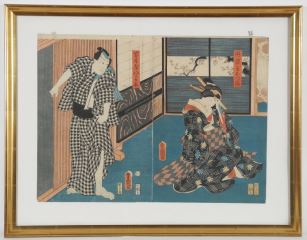LOT 15 Japanese Woodblock Diptych by Kunisada, 14 1/4" x 19 1/2" , 'Interior Scene/2 Figure Estimate: $120 - $180 Sold For: $160 Auction Date: Tuesday, November 26 2024 at 4:00 PM