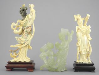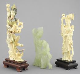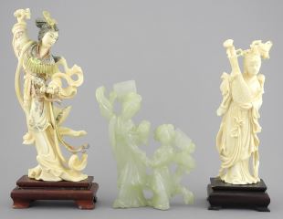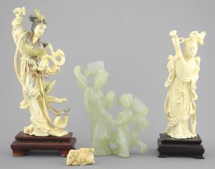 LOT 308 3 Chinese Figures & Japanese Netsuke , 7/8" - 8 1/4"h, NO EXPORT. Estimate: $60 - $100 Sold For: $170 Auction Date: Tuesday, November 26 2024 at 4:00 PM
