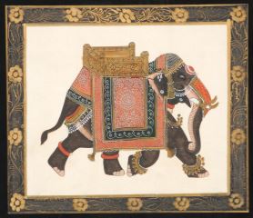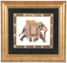 South Asian Mixed Media on Silk, 8" x 9 1/4", "Caparisoned Elephant".