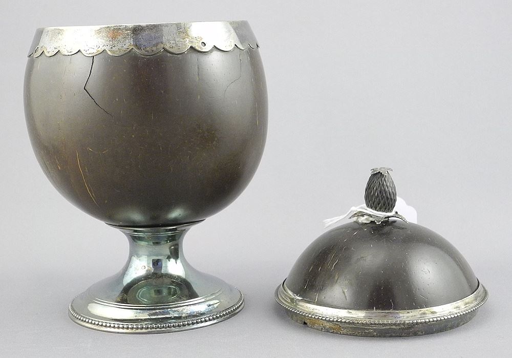 8" Silver Plate Trimmed Coconut & 14" Basket.