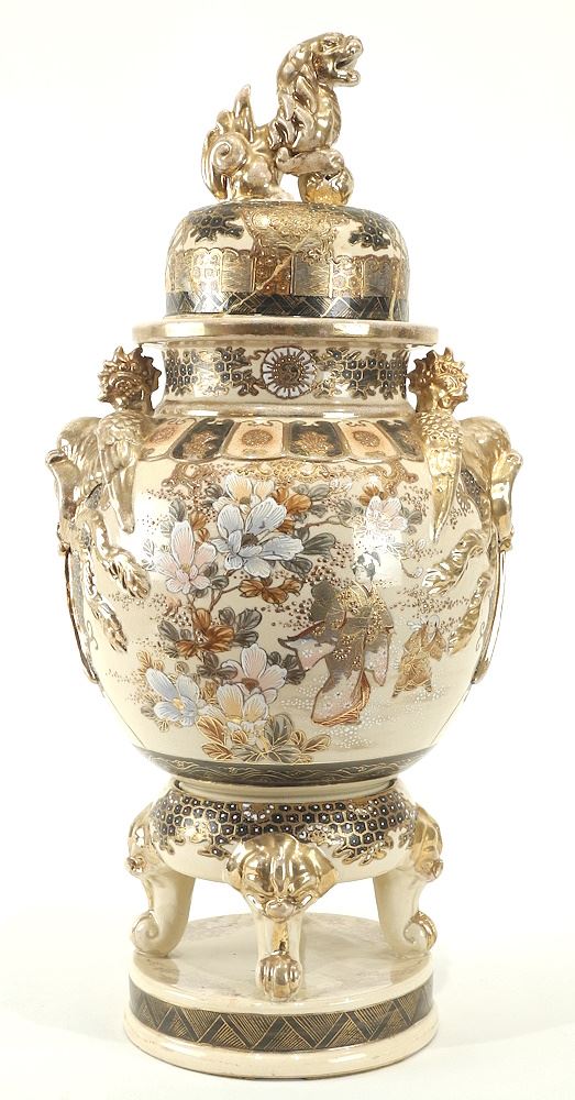 LOT 303 22" Japanese Satsuma Vase (lid broken & repaired). Estimate: $50 - $80 Auction Date: Tuesday, November 26 2024 at 4:00 PM