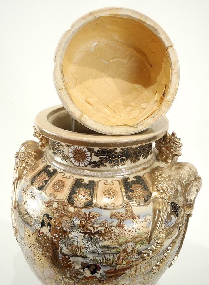 22" Japanese Satsuma Vase (lid broken & repaired).