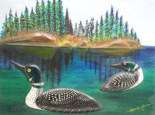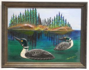 LOT 141 Two Mixed Media on Board signed N. (Noel) Ducharme, 18" x 24", "Common Loons" & "Beaver Dam". Estimate: $100 - $200 Sold For: $110 Auction Date: Tuesday, November 26 2024 at 4:00 PM