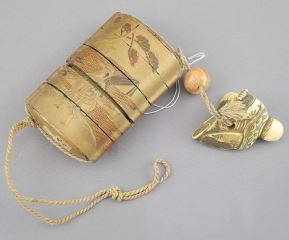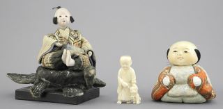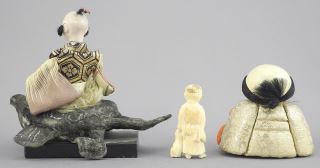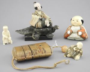 LOT 194 5 Japanese Items: Inro (3 1/4"h, card noted) / 2 GoFun Figures / Okimono / Netsuke, NO EXPO Estimate: $100 - $200 Sold For: $100 Auction Date: Tuesday, November 26 2024 at 4:00 PM