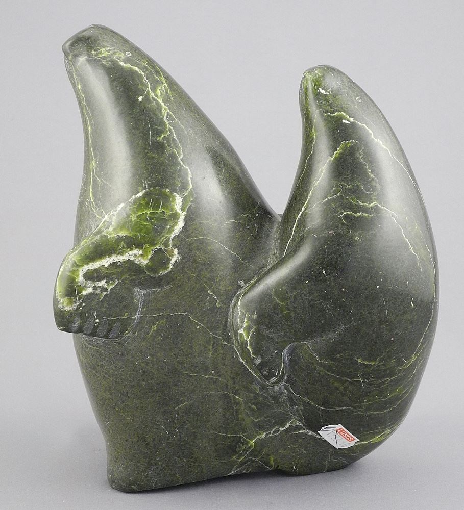 Arctic Bay Stone Sculpture signed E5215, 8 1/4"h, "Two Seals".