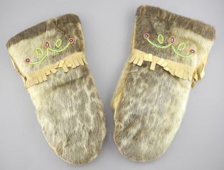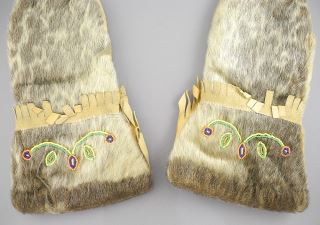 Pair of 14" Beaded Seal Skin Mitts.