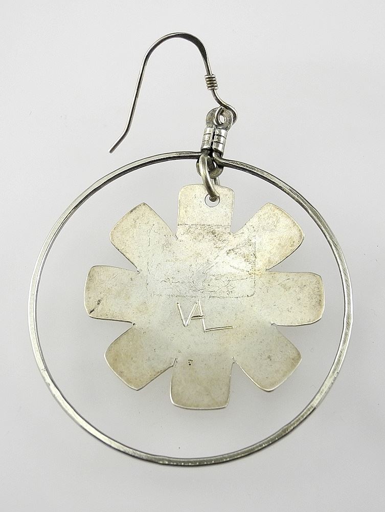 Pair of Northwest Coast Silver "Sun" Earrings Monogrammed VAL, 7.7g