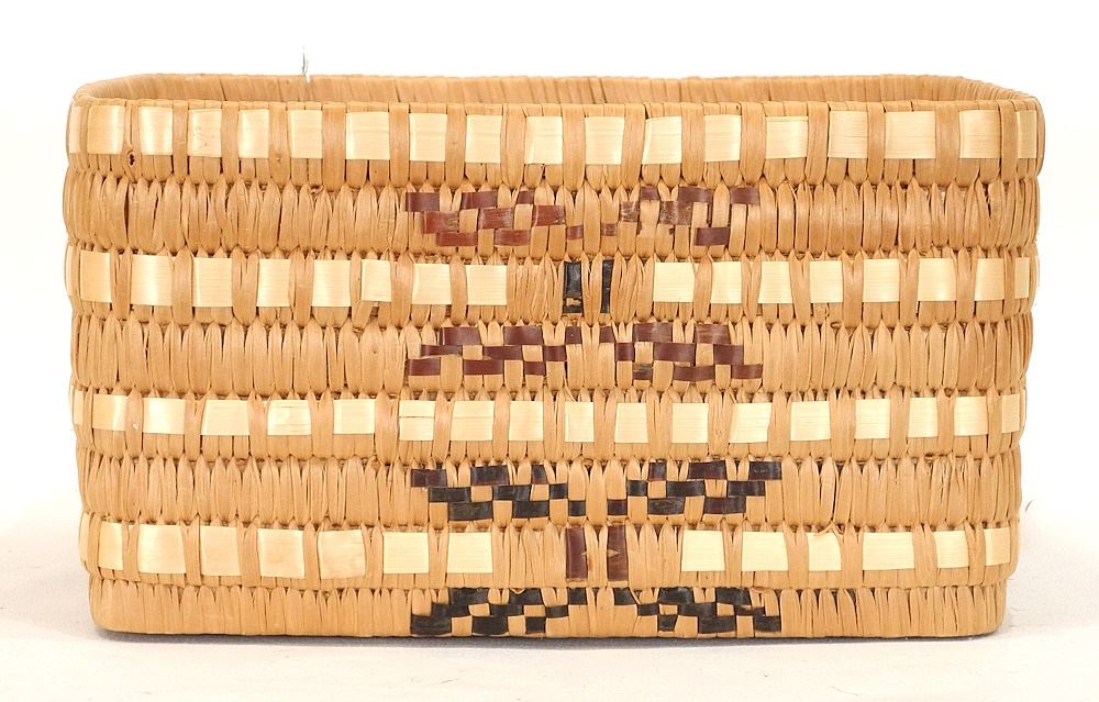 Salish Beaded Square Basket, 6 1/8" x 11 1/2" x 11 3/4".
