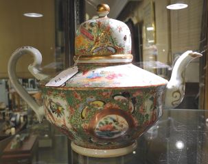 LOT 32 Chinese Rose Mandarin Porcelain Teapot, 8 1/8"h. Estimate: $100 - $200 Sold For: $225 Auction Date: Tuesday, November 26 2024 at 4:00 PM