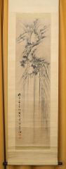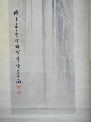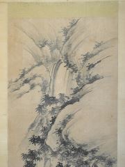 Ink Scroll Attributed to Shoyu, Sight 48" x 13", "Waterfall".