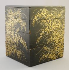 Japanese Tiered Lacquer Box, 8" x 6 5/8" x 6" (chipped corners noted).