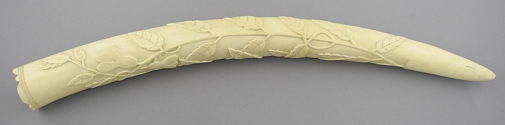 Congolese Tusk with Floral Decoration, 19 3/4"L, NO EXPORT.
