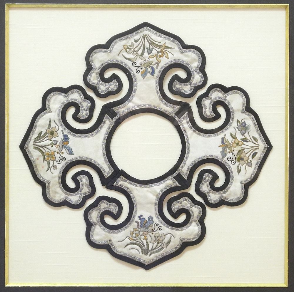 2 Mandarin Silk Collars, Framed, 8 3/8" & 12 1/4"w.