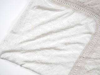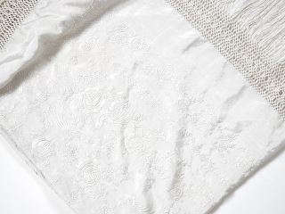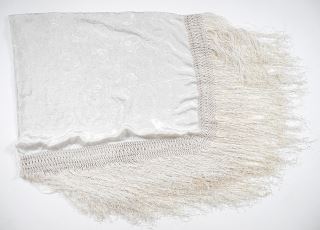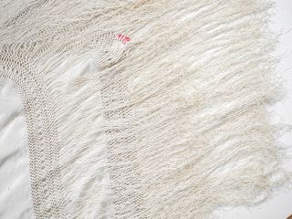 Chinese Silk Piano Shawl with Long Fringes Approximately 50" x 50".