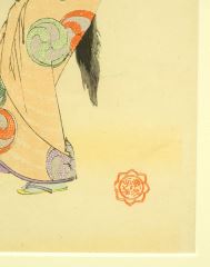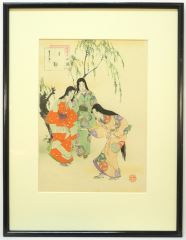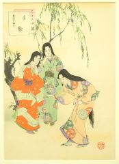 Woodblock Print by Toshikata, 12 1/2 " x 8 7/8", "Playing with a Ball".