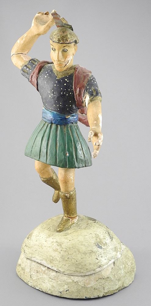 Latin American Santos Figure, Carved & Painted Wood, 16 3/4"h (as found, restoration noted).