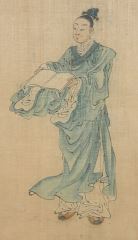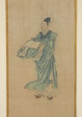 Chinese Ink & Colour on Paper, 23 1/2" x 5 3/4", "Figure with Open Book".