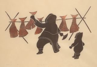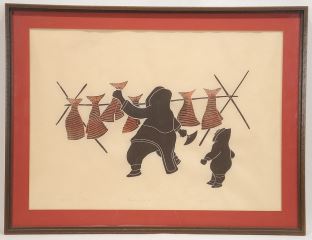 LOT 280 Holman Print signed (Peter) Aliknak, 15" x 21", "Preparing Dry Fish" #6/50. Estimate: $100 - $200 Sold For: $110 Auction Date: Tuesday, November 26 2024 at 4:00 PM