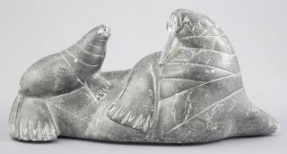 Inuit Stone Walrus signed Daniel 11612, 8 1/4"L.