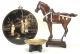 17 1/2" Wooden Horse / Brass Bowl on Stand & Chinese Lacquer Plaque.