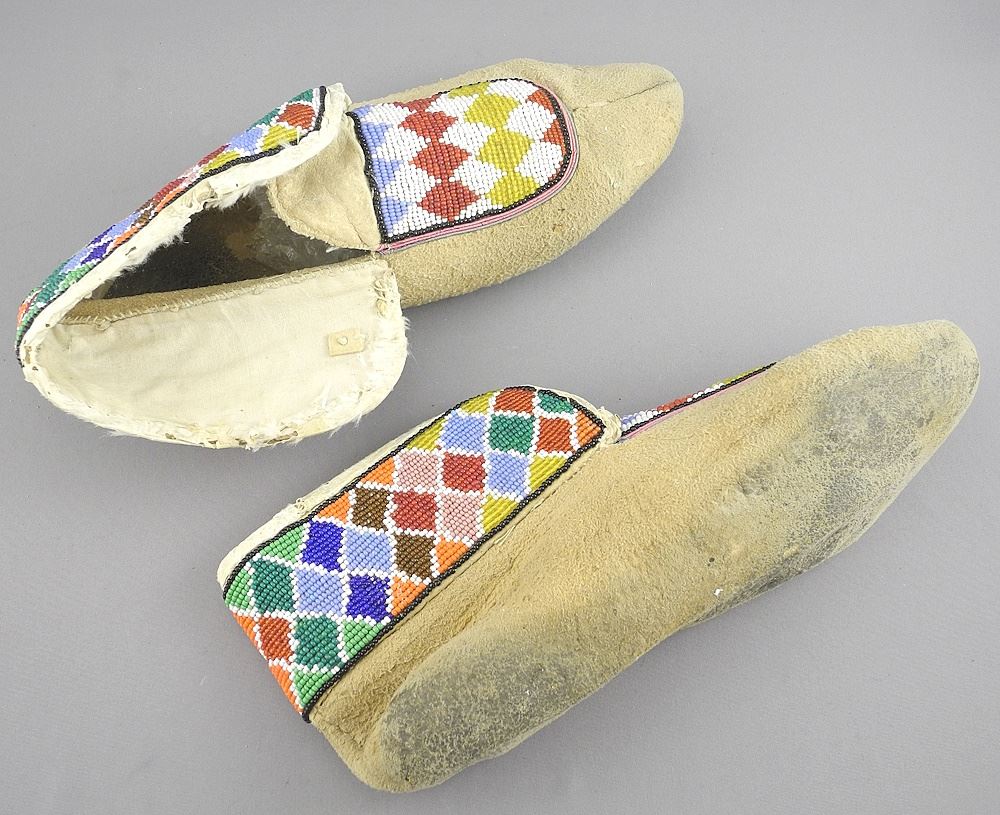 LOT 202 Three Pair of Beaded Moccasins & Child's Booties, 4 1/4" - 9 1/4"L. Estimate: $100 - $200 Sold For: $110 Auction Date: Tuesday, November 26 2024 at 4:00 PM