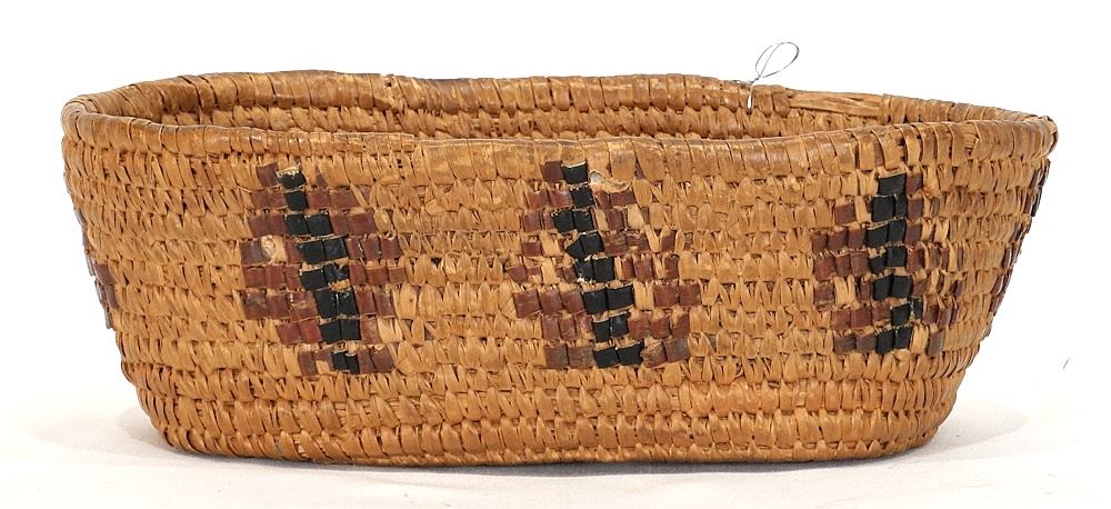 LOT 41 Salish Imbricated Oval Basket, 11 1/4"W. Estimate: $100 - $150 Auction Date: Tuesday, November 26 2024 at 4:00 PM