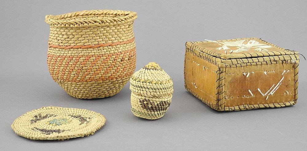 LOT 197 Collection of Various Baskets: Salish / Nuu-Chah-Nulth / Porcupine Quill. Estimate: $100 - $200 Sold For: $120 Auction Date: Tuesday, November 26 2024 at 4:00 PM