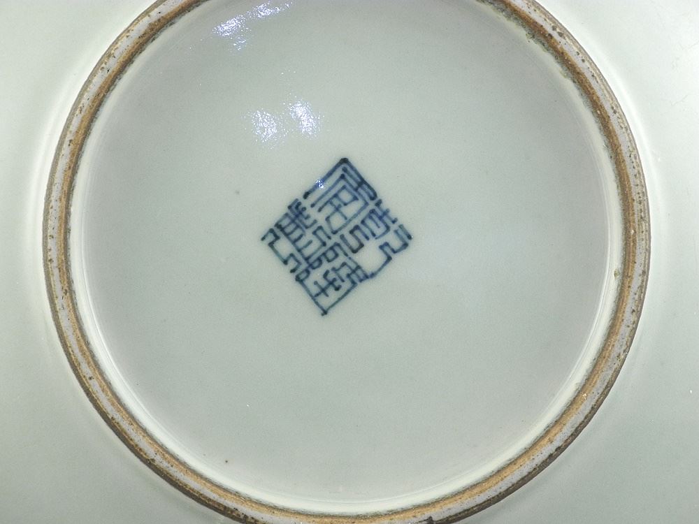 8 1/2" Chinese Carved Celadon Dish with Qianlong Mark.