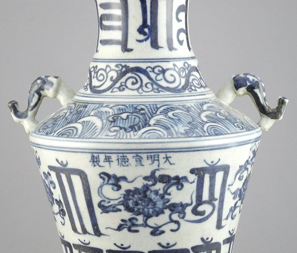 LOT 131 Ming-Style Blue & White Porcelain Vase with Lanca Characters, 16"h. Estimate: $100 - $200 Sold For: $140 Auction Date: Tuesday, February 04 2025 at 4:00 PM