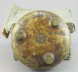 Chinese Bronze Censer with Xuande Mark, 1 7/8" x 5 1/4" Diameter, 933g