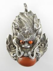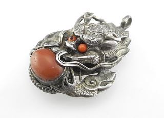 Chinese Silver Alloy Dragon Pendant, 1 3/4"h., 10.6gr.