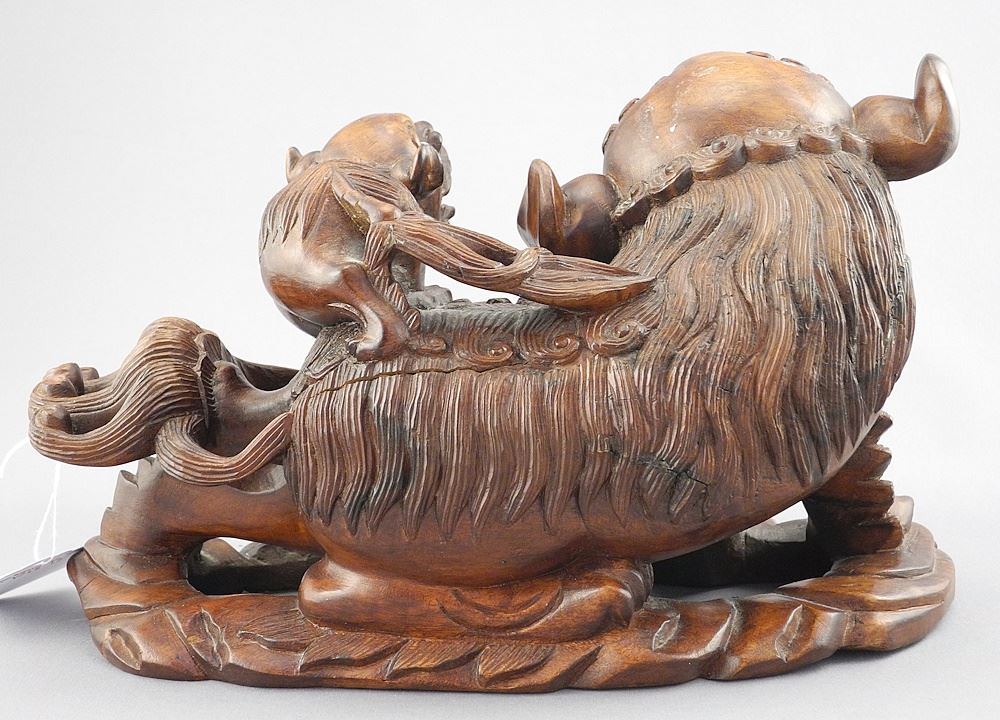 LOT 103 Japanese Carved Hardwood Shishi & Pup, 9 5/8"w. Estimate: $60 - $100 Auction Date: Tuesday, February 04 2025 at 4:00 PM