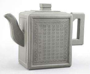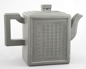 LOT 116 Yixing Ware Molded Calligraphic Tea Pot, Acquired 1990. Estimate: $60 - $100 Auction Date: Tuesday, February 04 2025 at 4:00 PM