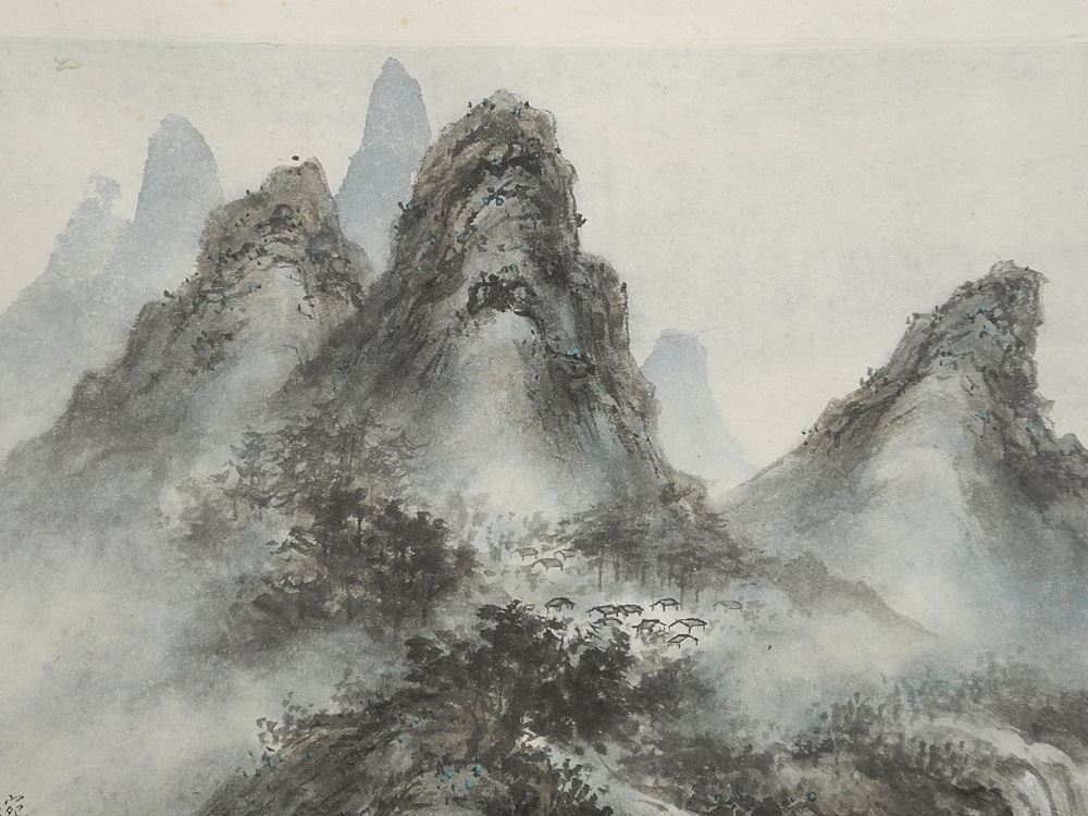 Ink & Colour on Paper signed with Chop Wan Xian, 15 3/8" x 21 3/8", "Mountainous Landscape".