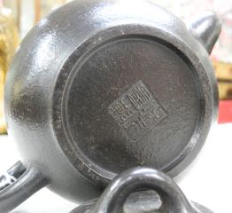 Yixing Purple Clay "Calligraphy of Blessing" Teapot, 3 1/2" High (mis-matched lid noted).