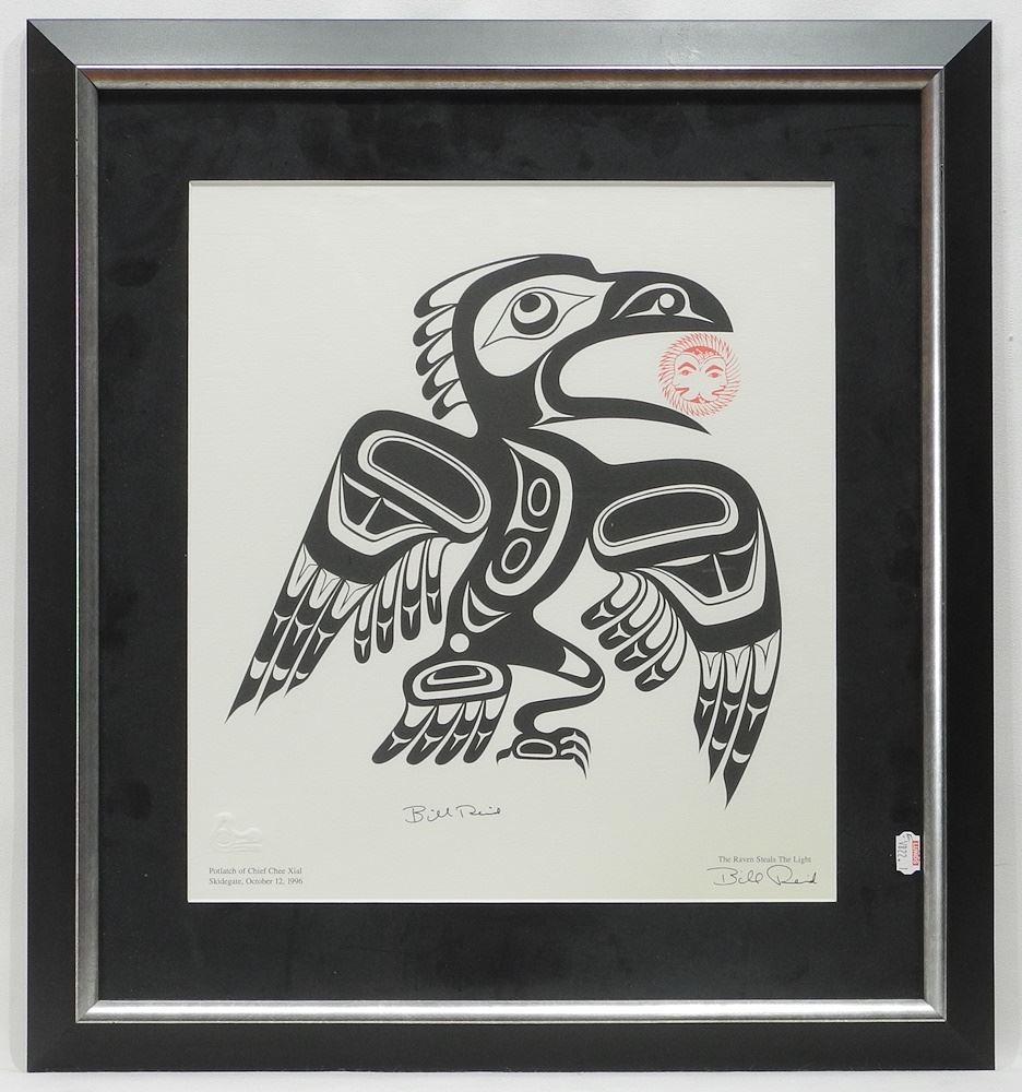 LOT 143 Serigraph signed Bill Reid, 14 1/2" x 13", "The Raven Steals the Light", 1996. Estimate: $200 - $300 Sold For: $475 Auction Date: Tuesday, February 04 2025 at 4:00 PM
