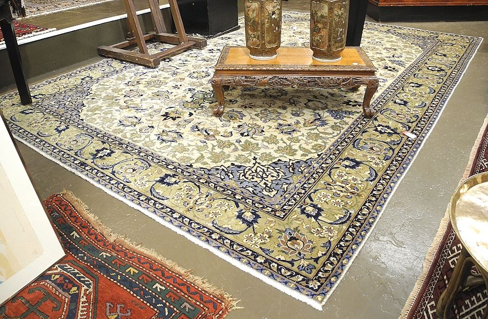 LOT 314 Hand Knotted Isfahan Carpet Approximately 12'7" x 8'10" (low pile noted). Estimate: $500 - $750 Sold For: $425 Auction Date: Tuesday, February 04 2025 at 4:00 PM