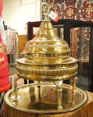 LOT 69 Egyptian Brass Brazier on Stand, 23 x 21 1/2" Diameter. Estimate: $100 - $200 Auction Date: Tuesday, February 04 2025 at 4:00 PM