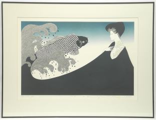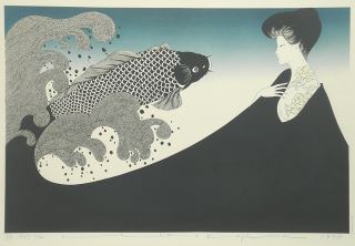 Lithograph signed Kojima Kimiko, 18 1/2" x 27 1/4", "Koito Botan" #10 /20, 1978.